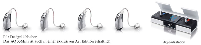 Die Systeme gibt es als Hinter-dem-Ohr- und Im-Ohr-Variante. Zusätzlich zur IO-Version und zum X-Mini ist AQ auch in der Bauform Slim verfügbar. Das AQ Slim ist für unterschiedlichste Hörverluste- und Präferenzen einsetzbar und auch mit einem transparenten Minischlauch kombinierbar. Somit ist eine ideale Versorgung der meisten Hörverluste gewährleistet.