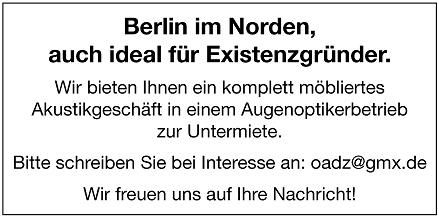 Akustikgeschäft in Augenoptikbetrieb zur Untermiete