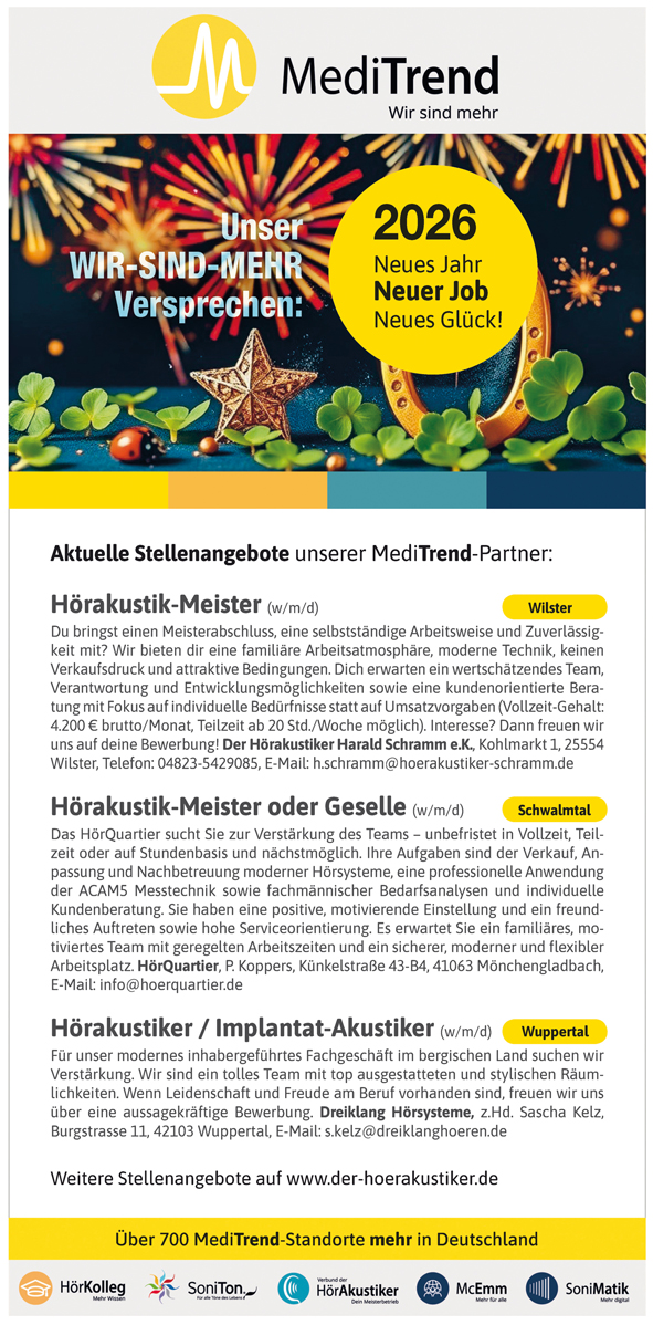 Hörakustik-Meister, Gesellen, Hörakustiker, Implantat-Akustiker (m/w/d)